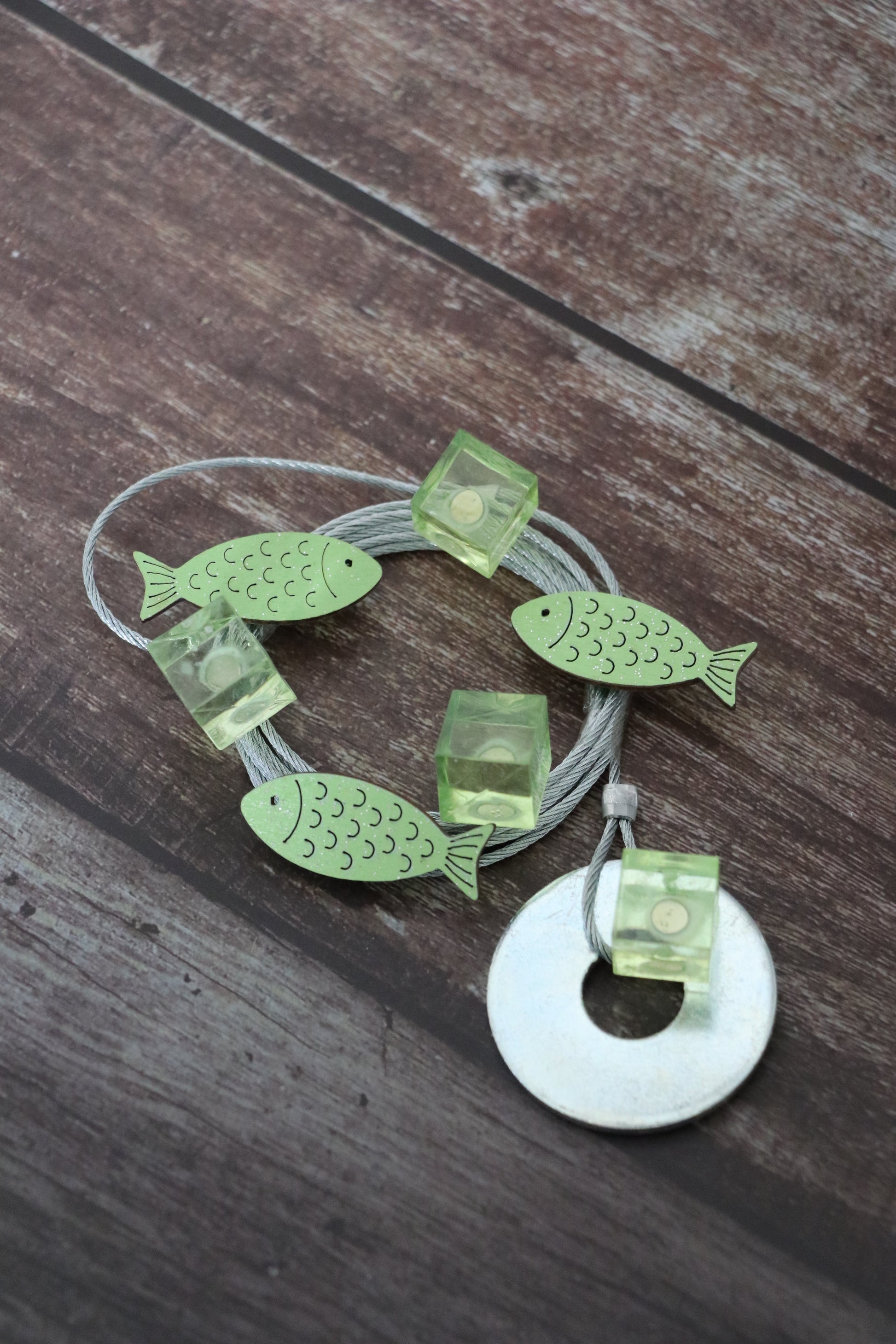 Fotoseilset mit Magneten (vertikal) - Fische grün
