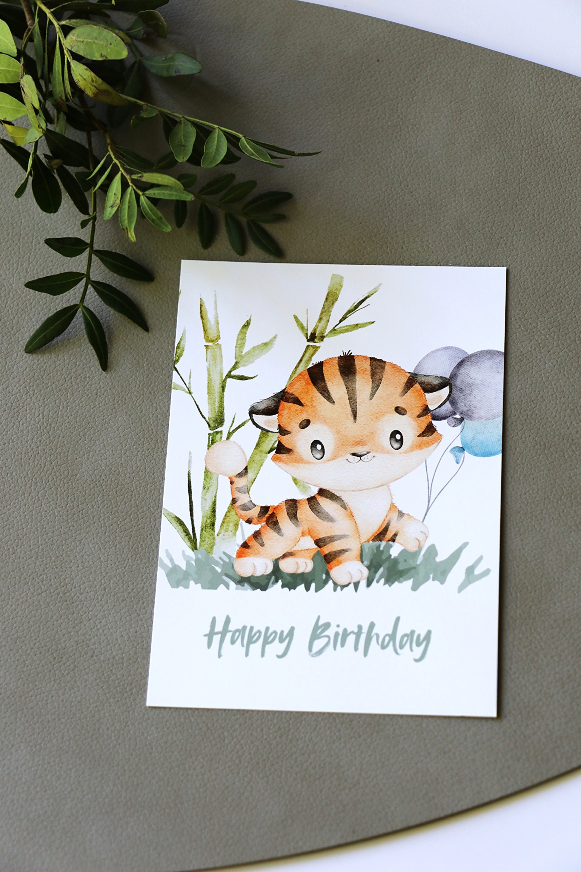 Verschenke Geburtstagsgrüße mit dem kleinen Tiger. Er hinterlässt eine Spur voller Freude und Überraschung.