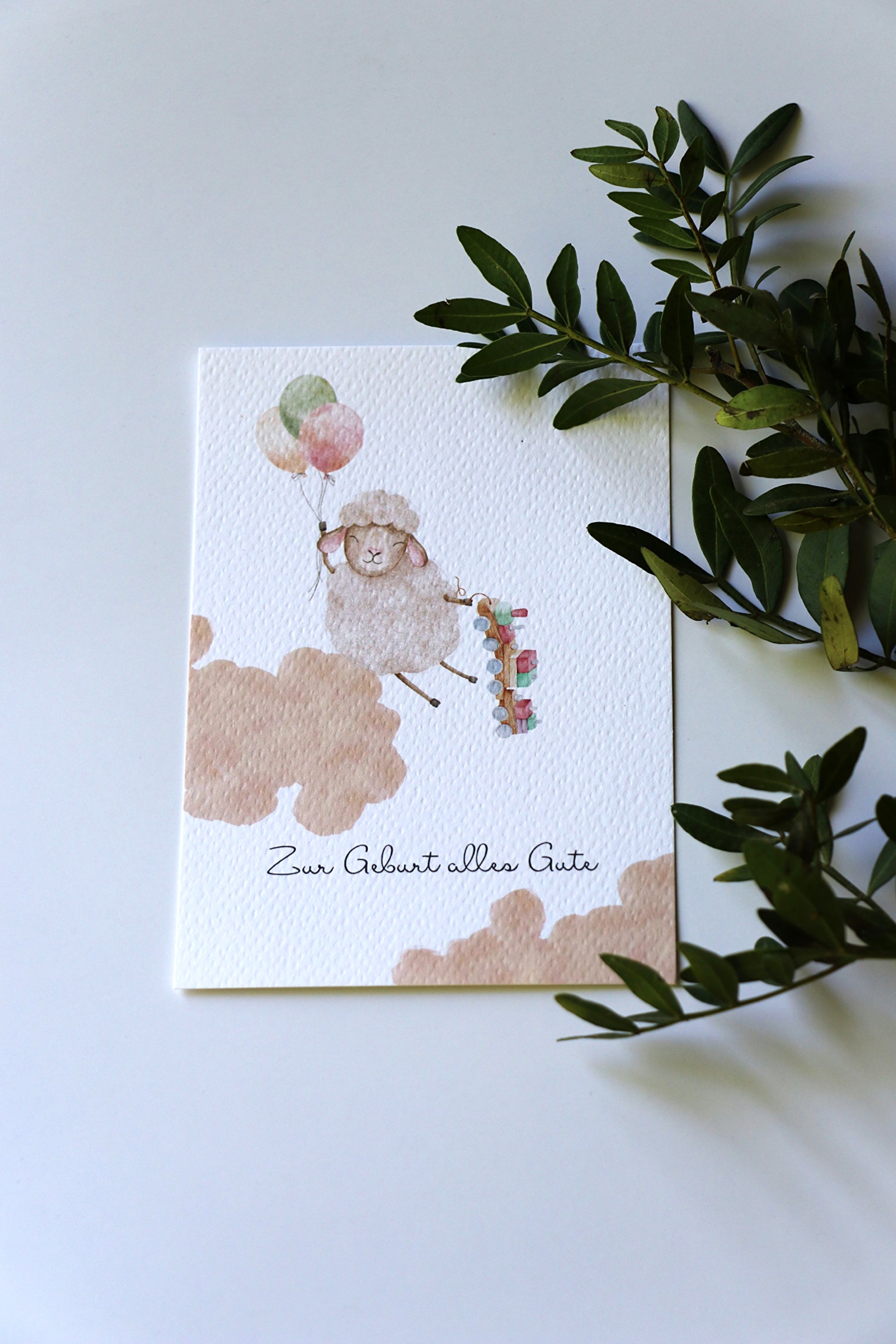 Wie auf Wolken schwebt das kleine Glück heran - diese Karte fängt den Zauber eines neuen Lebens sanft ein.
